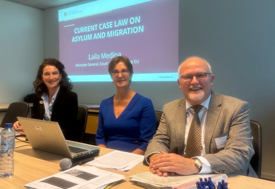 Highlights of the first day included exchanges with Judge of the ECtHR Gilberto Felici and Advocate General Laila Medina on recent jurisprudence of the two European Courts on matters related to asylum and migration. Our colleagues Margot Stoové (Netherlands) and Holger Böhmann (Germany) shared their national expertise as discussants.